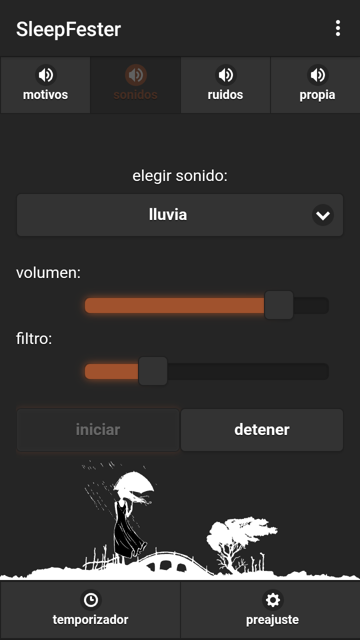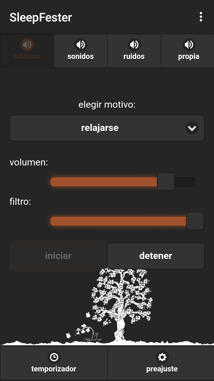 infoSleepFester contiene 48 sonidos, ruidos y motivos armoniosos de alta calidad que ayudan a los bebés y niños a encontrar distracciones y dormirse más fácilmente. Esto no excluye que niños y adultos no puedan usar la aplicación! Para cualquier persona que quiera crear un fondo agradable de sonidos para sí mismo o para los demás, ya sea para dormir, relajarse o soñar. Se pueden combinar hasta 3 fuentes de sonido diferentes para crear una experiencia de sonido óptima, sin limitación de un solo sonido a la vez. Durante el embarazo, los bebés tenían un ruido de fondo amortiguado pero permanente en el estómago de la madre. SleepFester puede proporcionarles un entorno acústico familiar después del nacimiento, donde pueden sentirse cómodos y relajados. Por lo tanto, SleepFester ofrece la posibilidad de filtrar los sonidos con un "paso bajo" y así reducir las altas frecuencias - como en el vientre de mamá. Todos los sonidos se pueden atenuar con la ayuda de un temporizador. Para garantizar una reproducción óptima del sonido de todos los espectros de frecuencia, es aconsejable conectar el smartphone/tablet a un amplificador, altavoz o sistema de reproducción similar.